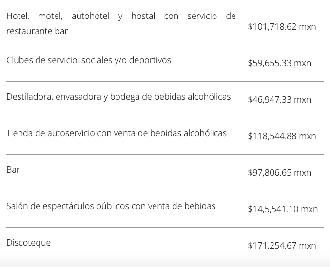 Cada permiso tiene un precio diferente y debes de consultarlo antes de planear el tipo de bar que quieres para darte una idea de cuánto necesitas invertir.