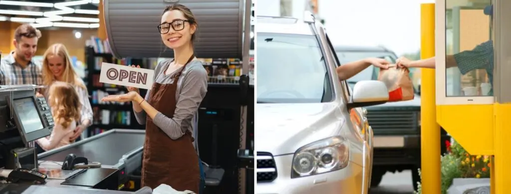 Este servicio es famoso en negocios como McDonalds, sin embargo, puede ser aplicable a cualquier giro de negocio, donde el cliente tenga prisa o deseé comprar rápido. Por ejemplo, un nuevo negocio es la venta de lo necesario para una fiesta (cerveza, papas, refrescos, etc).
